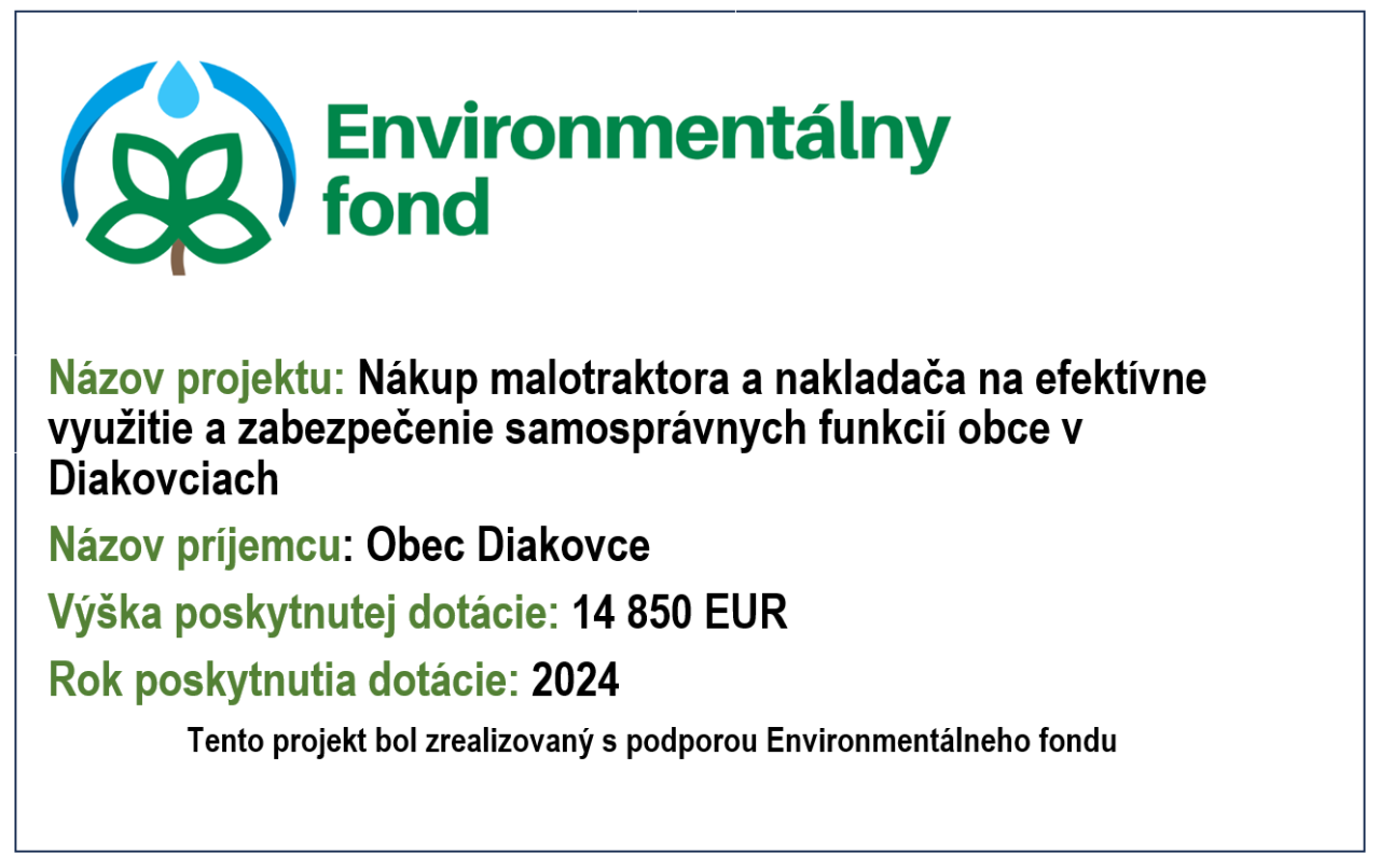 Projekt: "Nákup malotraktora a nakladača na efektívne využitie a zabezpečenie samosprávnych funkcií obce v Diakovciach"