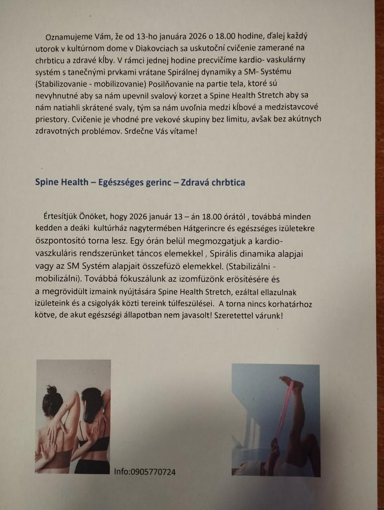 Cvičenie "Zdravý chrbát" - Egészséges "Gerinctorna"