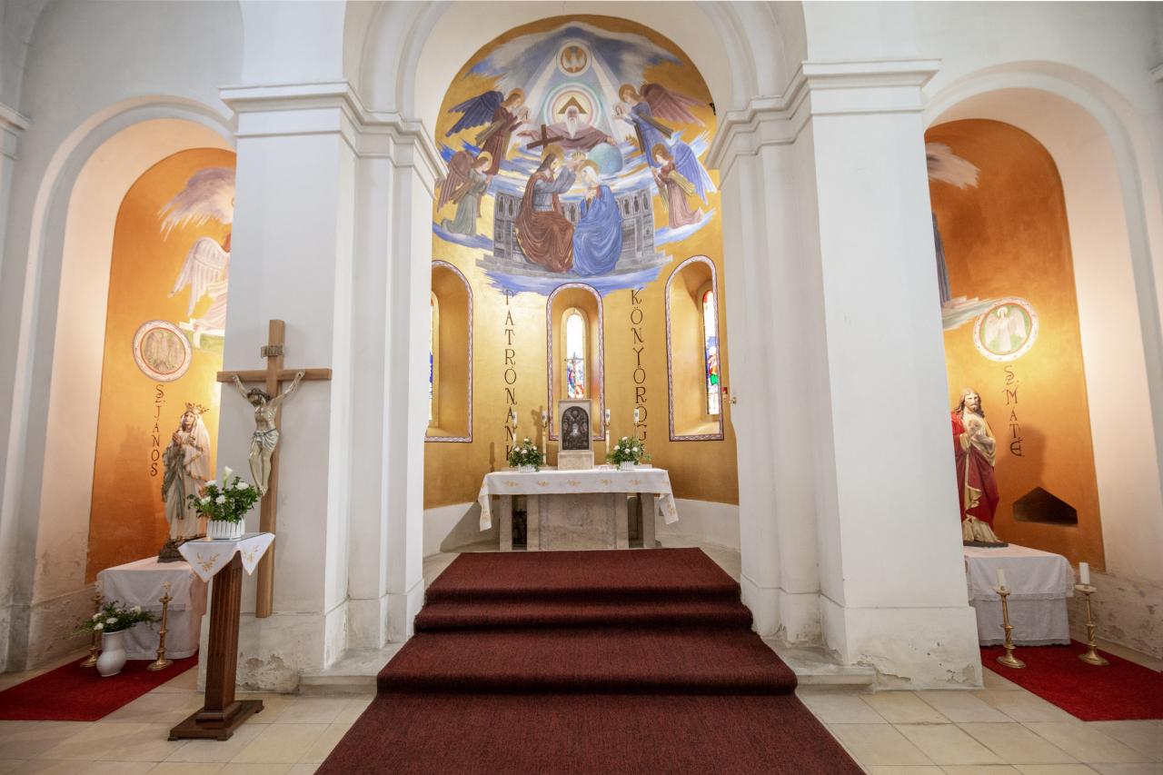 Kostoly-Kostol Panny Márie Nanebovzatej, Kostol reformovanej cirkvi, Evanjelický kostol – Templomok – Római katolikus Nagyboldogasszony templom, Református templom, Evangélikus templom
