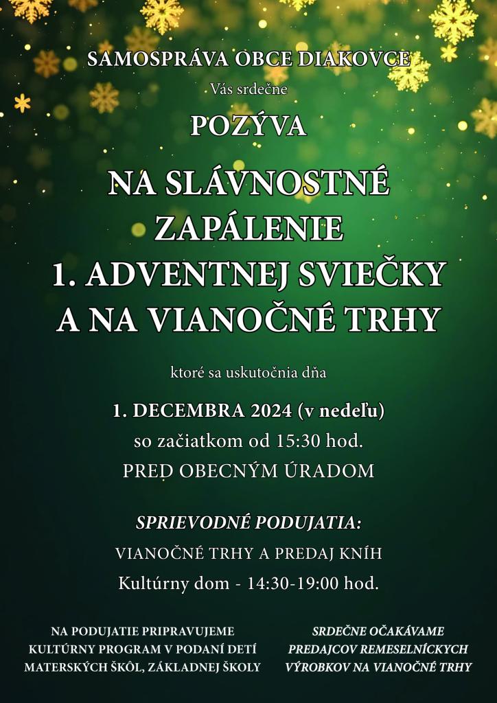 Slávnostné zapálenie 1. adventnej sviečky - vianočné trhy